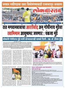 दसरा मेळाव्याची गेल्या अनेक वर्षाची परंपरा जपत लोकनेते गोपीनाथराव मुंडे यांनी सुरू केलेला दसरा मेळावा भगवानगडावरून भगवान भक्ती गडावर आल्यानंतर ही परंपरा पंकजाताई मुंडे यांनी तितक्याच जबाबदारीने पार पाडली. आजच्या दसरा मेळाव्याच्या मंचावरून सावरगाव घाट येथील भगवान भक्ती गडावरच्या मंचावर संत भगवान बाबांच्या मूर्तीची विधिवत पूजा केल्यानंतर लाखो जनसागराला त्या संबोधित करीत होत्या. मंचावर खासदार डॉक्टर प्रीतम ताई मुंडे, खासदार डॉक्टर सुजय विखे पाटील, महादेव जानकर, आमदार मुंदडा, आमदार मेघनाताई बोर्डीकर, माजी आमदार भीमराव धोंडे, शिवाजी कर्डिले, प्रकाश मामा महाजन, आमदार बाळासाहेब मुरकुटे, आदी सह विविध मान्यवरांची उपस्थिती होती. पंकजाताई मुंडे त्यांनी आपल्या मुंडे स्टाईलने विराट जनसमुदायाला पहिल्याच वाक्यापासून प्रेरित केले.. आणि समोरील उत्स्फूर्त जनसागरातून ‘गोपीनाथ मुंडे अमर रहे..!’ च्या घोषणांनी परिसर अक्षरशः दणाणून गेला. त्या म्हणाल्या, साखर कारखान्यावर तपासणी झाल्यानंतर तुम्ही कोटी रुपये जमा केले. तुम्ही उन्हात तर आम्ही उन्हात; परंतु तुम्ही उन्हात असताना सत्तेत बसणारे मुंडेंचे रक्त असू शकत नाही असा धगधगता इशारा देत इथे सर्व समाजाचे लोक आहेत. इथे शेतकरी सुखी नाही. शेतमजुरांना काम नाही. ऊसतोड कामगारांना न्याय दिल्याशिवाय आपण स्वस्थ बसणार नाही असे त्यांनी अस्वस्त केले.मध्यंतरी भाषणा दरम्यान माइक बंद पडला. तो खासदार डॉ. सुजय विखे आणि यशश्री मुंडे यांनी तो बदलून दिला. हा धागा पकडत पंकजाताई मुंडे यांनी तुमची एवढी प्रचंड शक्ती सोबत असेल तर आपला आवाज कोणी दाबू शकणार नाही.. असा गर्भित इशारा देताच समोरील जनसागरातुन पंकजाताई मुंडे तुम आगे बढो च्या घोषणांनी अवघा आसमंत एक झाला! मी तुम्हाला स्वाभिमान देऊ शकते. कारण लोकनेते गोपीनाथराव मुंडेंनी सांगितले होते..’ पंकजा तुझ्या पदरात जनता टाकतोय, तु त्यांची काळजी घे. तुम्ही कोटी रुपये देऊ केले पण मी ते घेणार नाही, फक्त तुमचा आशीर्वाद घेणार. मुला इतकीच जनता ही माझी जबाबदारी असून परळी इतकेच मी पाथर्डीला माझे समजते. माझ्यामुळे तुम्हाला त्रास होतो, असा विनम्र भाव दाखवत त्यांनी माझ्यात नीतिमत्ता आहे. पदे नसली तरी निष्ठा काय असते हे समोरील जनसागरावरून समजते. तुम्हाला उन्हात ठेवणाऱ्यांचे घर उन्हात बांधल्या शिवाय राहणार नाही. शिव शंकर भोळा असतो पण त्यालाही तिसरा डोळा असतो हे लक्षात ठेवावे. जिंकण्यासाठी तुम्ही निष्ठा गहाण ठेवणारी माणसे नाहीत. मी कर्जदार त्यांची नाही, तुमची आहे. आता बदलाची परिस्थिती निर्माण झालीय. मी तुमच्या भावना ऐकतेय, तुमची मी ताई नाही आई आहे. तुमच्या ज्या वेदना आहेत त्याच माझ्या आहेत. तुम्ह