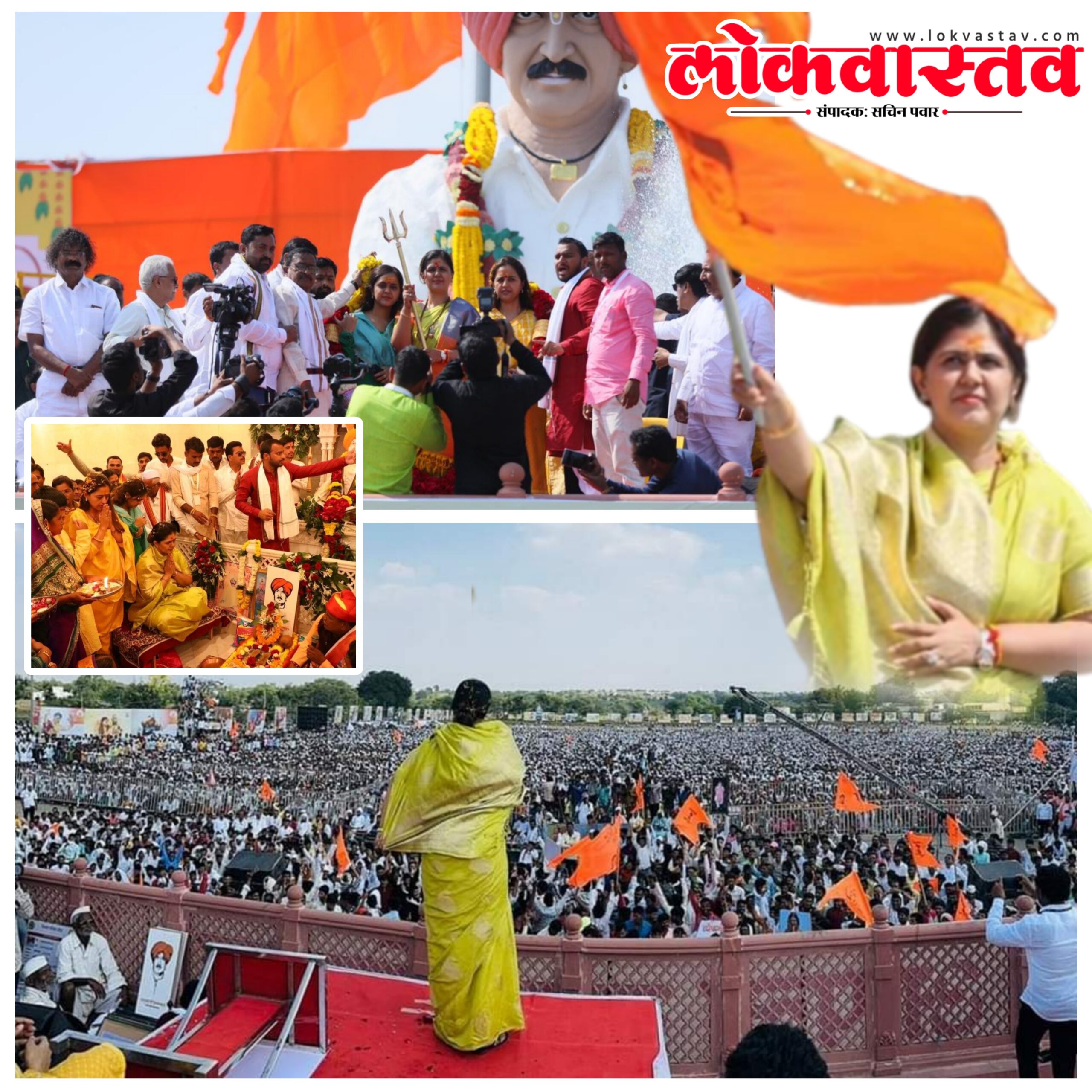 » पंकजाताईंनी ध्यान मंदिरात संत भगवान बाबांची विधिवत पूजा केली आणि एक वाजून 51 मिनिटांनी मंचावर आगमन झाले.